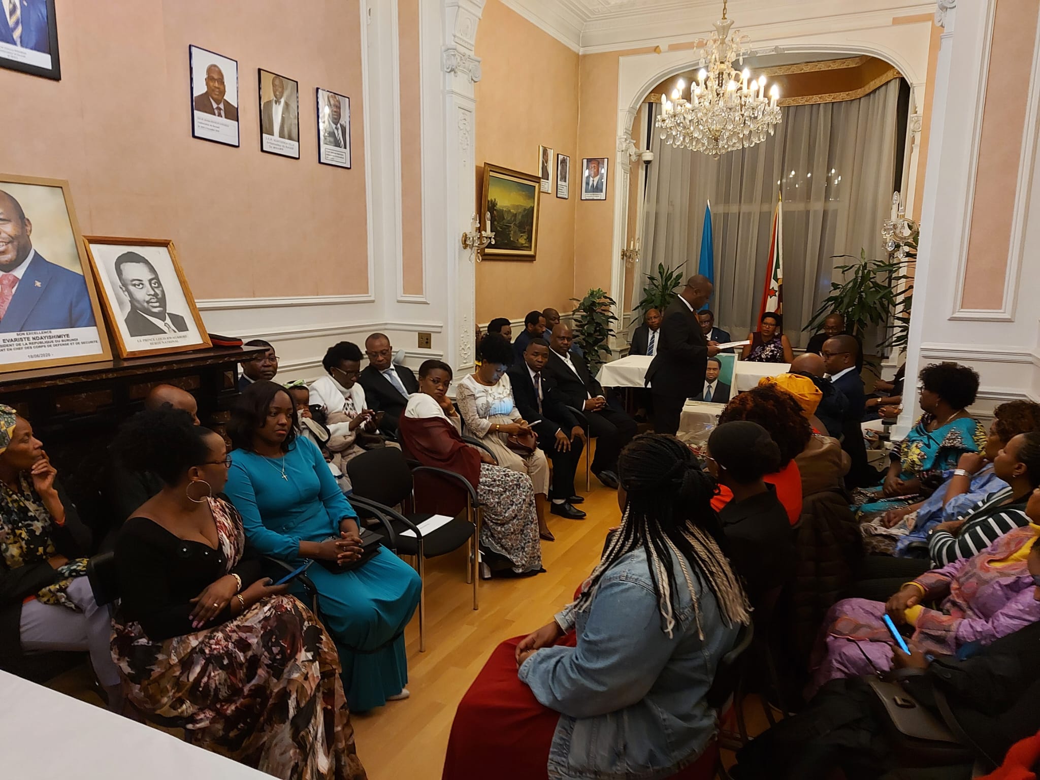 Débutant par une messe à l’Église Saint-Josse, portée par une joyeuse chorale, avec une homélie de l’abbé Nahimana Daniel , comme à son habitude très remarquée pour sa justesse et son harmonie. Ce Vendredi, rassemblée par l’équipe merveilleuse d’ Amb. Ntahiraja Thérence , Ambassadeur du Burundi en Belgique et auprès de l’Union Européenne (UE), la diaspora burundaise de Belgique commémorait le 29ème anniversaire de l’assassinat de Feu Ndadaye Melchior, Héros de la “Démocratie” au Burundi, en présence de quelques membres de la famille du Feu défunt. Sans oublier que ce jour tragique du 21 octobre 1993, bons nombres de membres du gouvernement et de députés burundais furent aussi exécutés. Terminant la journée autour d’un verre et par les discours de circonstance dont l’écoute de certains fameux discours de Feu Ndadaye Melchior. Ambassadeur Ntahiraja Thérence, venu accompagné de son épouse, clôturant en ces mots : “Mes compliments, remerciements et gratitudes à tous les Burundais vivant en Belgique qui ont répondu à la commémoration du 29ème Anniversaire de l’assassinat du Héros de la démocratie au Burundi“.