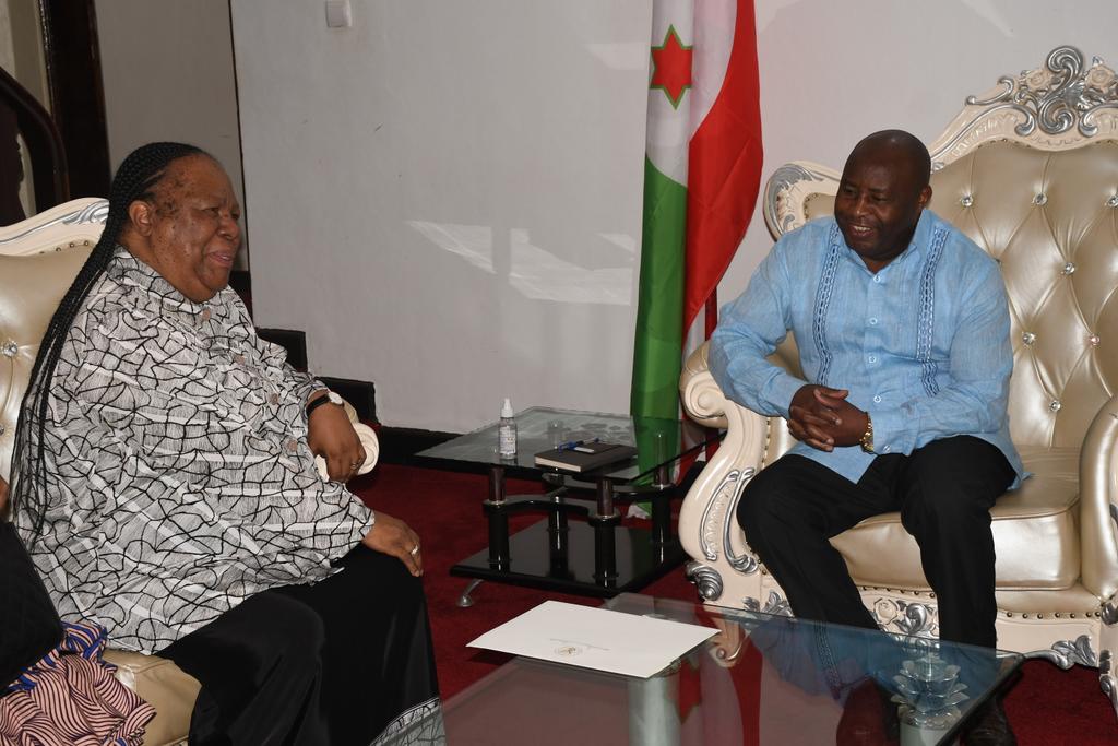 Après quelques jours de travail de la 1ère Session de la Commission mixte de coopération entre le Burundi et l’Afrique du Sud, accompagnée de M. Shingiro Albert, l’excellent Ministre burundais des Affaires Etrangères. Reçue par S.E. Ndayishimiye Evariste ( Général Major ), Président du Burundi, ce samedi, Mme Nakedi Pandor, Ministre Sud-Africaine des Relations Extérieures et de la Coopération , portait une invitation fraternelle de S.E. Ramaphosa Cyril, Président d’Afrique du Sud, s’accordant sur une visite officielle prochaine en Afrique du Sud.