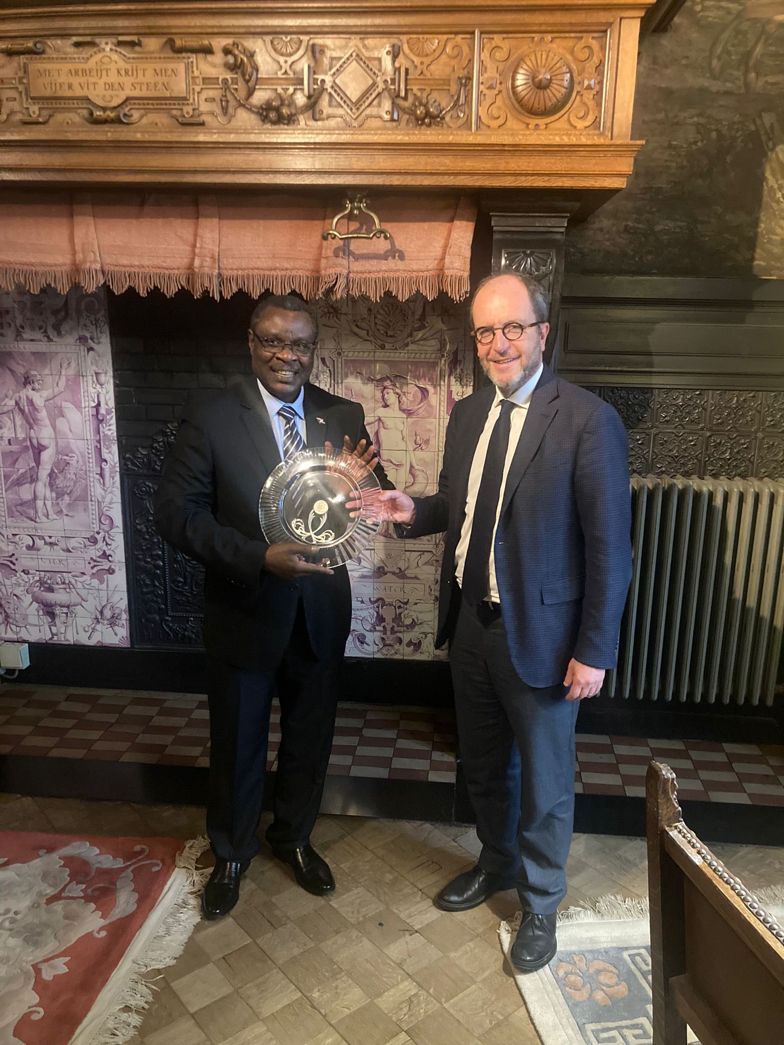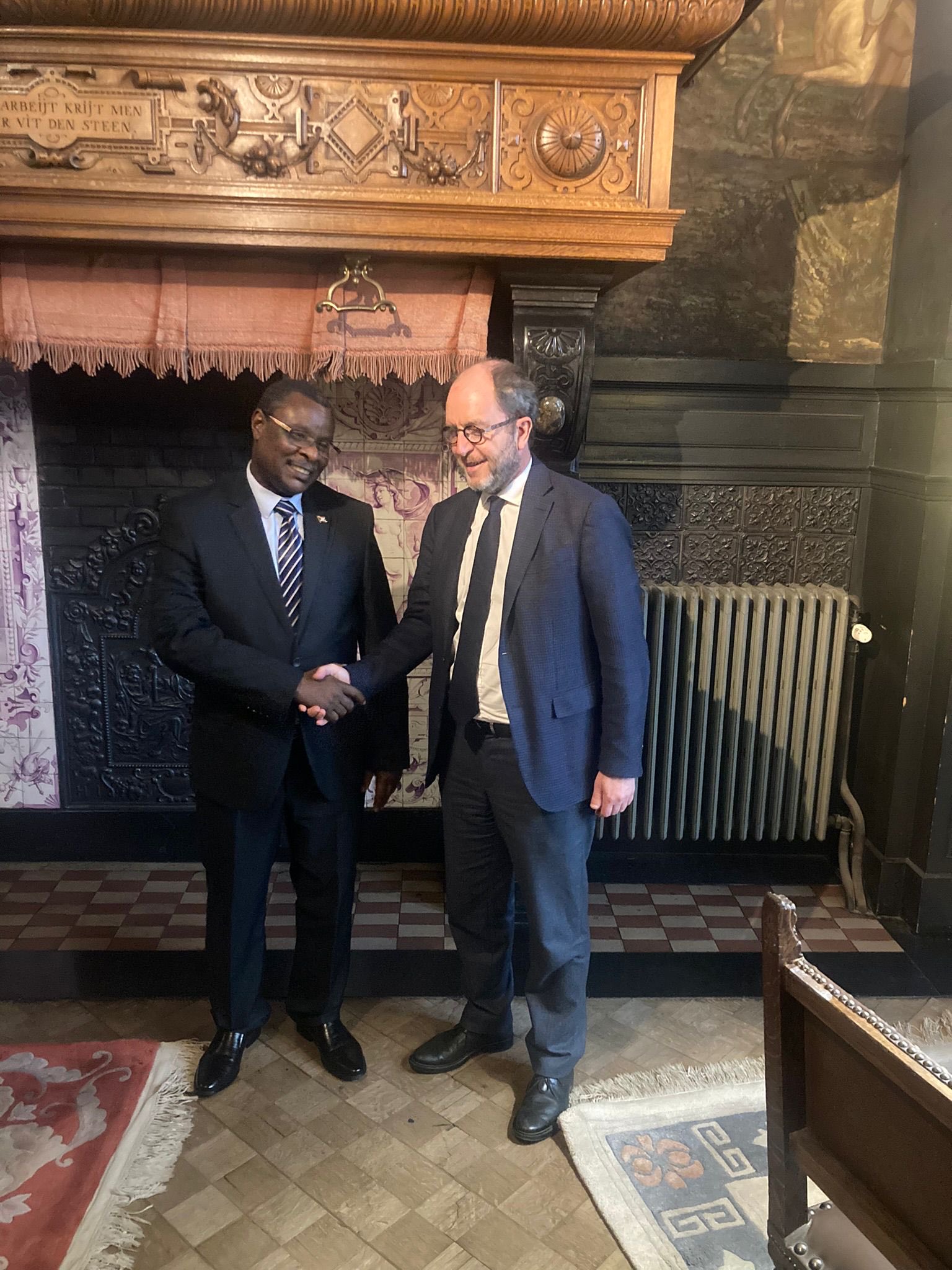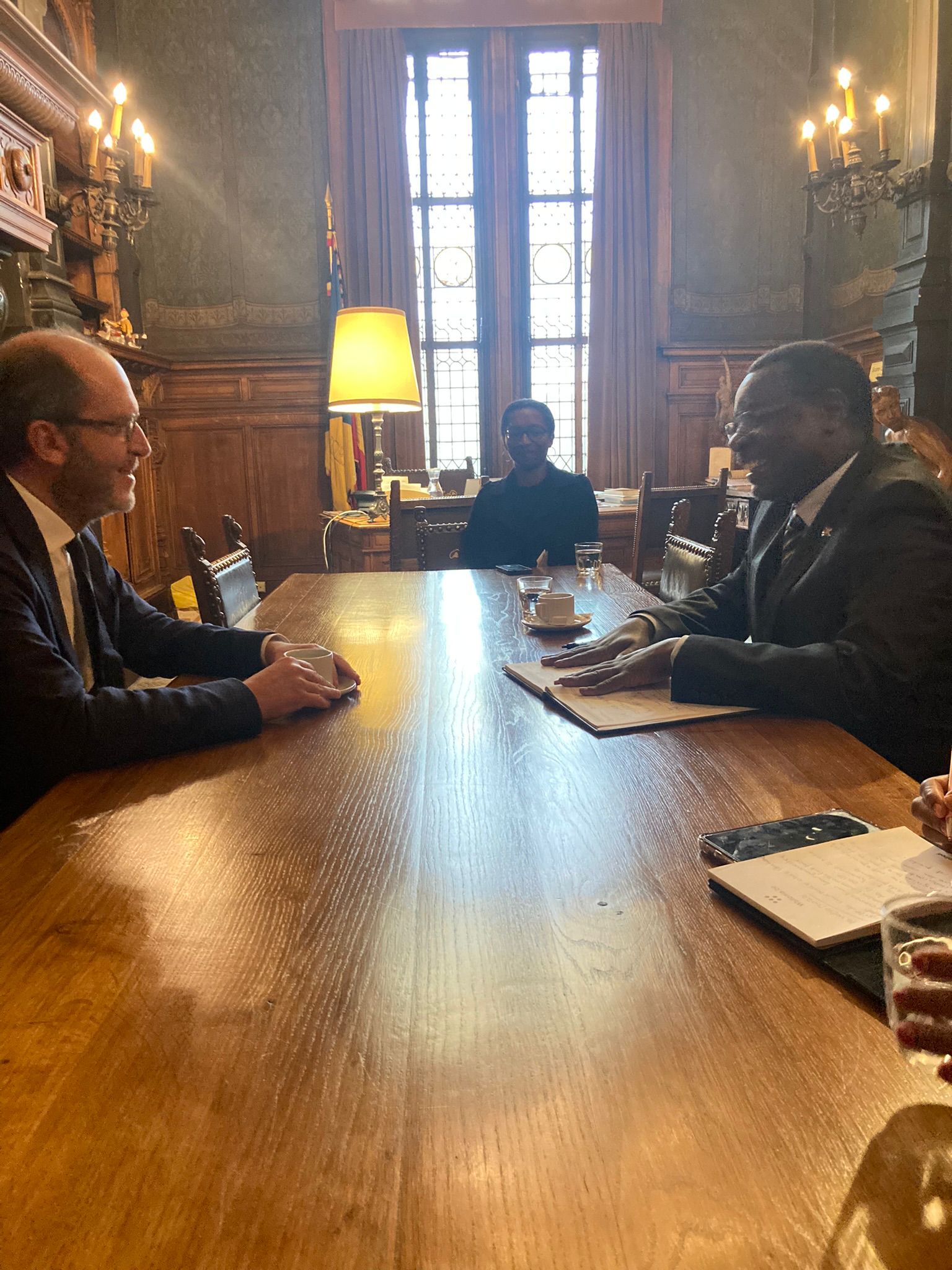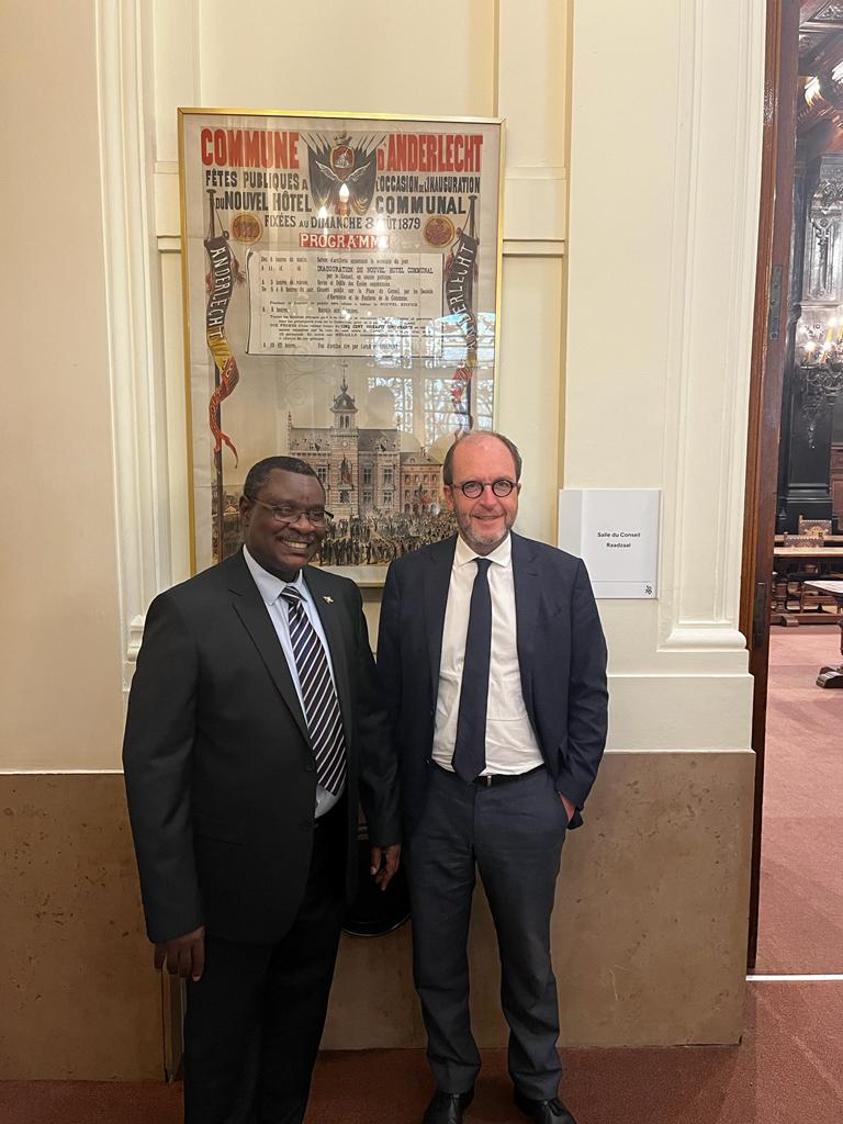 Amb. Ntahiraja Thérence parle jumelage avec M. Fabrice Cumps, Bourgmestre d’Anderlecht.