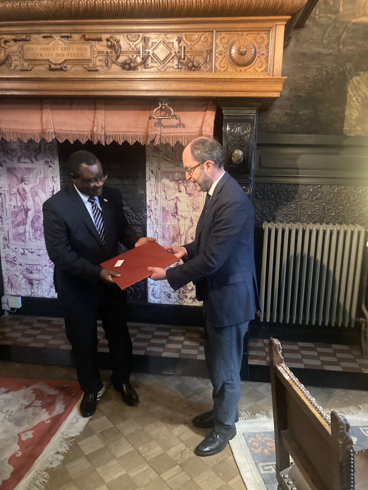 Cadrant avec la politique diplomatique des Barundi, ce jeudi, Amb. Ntahiraja Thérence , Ambassadeur du Burundi en Belgique et auprès de l’Union Européenne (UE), accompagné de son équipe, était accueilli chaleureusement par Mr Fabrice Cumps, Bourgmestre d’Anderlecht, échangeant ensemble sur la faisabilité d’un jumelage d’une commune du Burundi avec sa commune d’Anderlecht. D’un point de vue socio-économique,focalisant surtout dans le transfert technologique touchant les domaines agricoles et de l’élevage.
