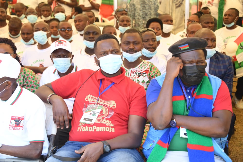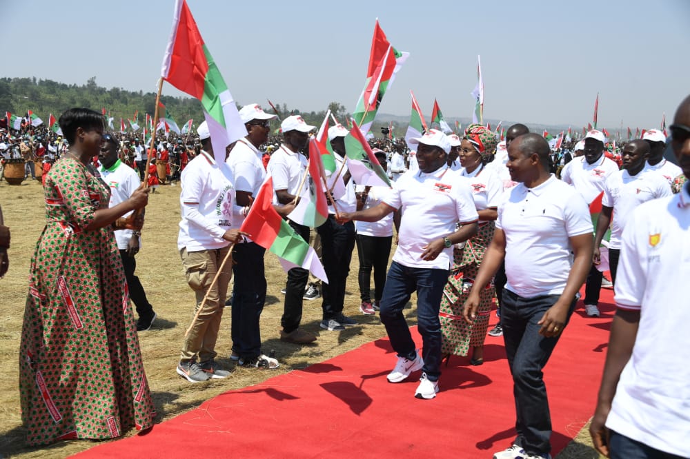 MUYINGA, 28/08/2021 – En présence de S.E. NDAYISHIMIYE Evariste (Général Major), Chef d’Etat du BURUNDI et Président du Conseil des Sages du CNDD-FDD. Le CNDD-FDD, 1ère force politique du BURUNDI, célèbre L’ IMBONERAKURE DAY 2021. S’agissant d’une journée dédiée à LA JEUNESSE DU CNDD-FDD. Accueillant de nombreuses délégations politiques étrangères. Les IMBONERAKURE de chaque province du pays ont défilé devant les invités venus les encourager.