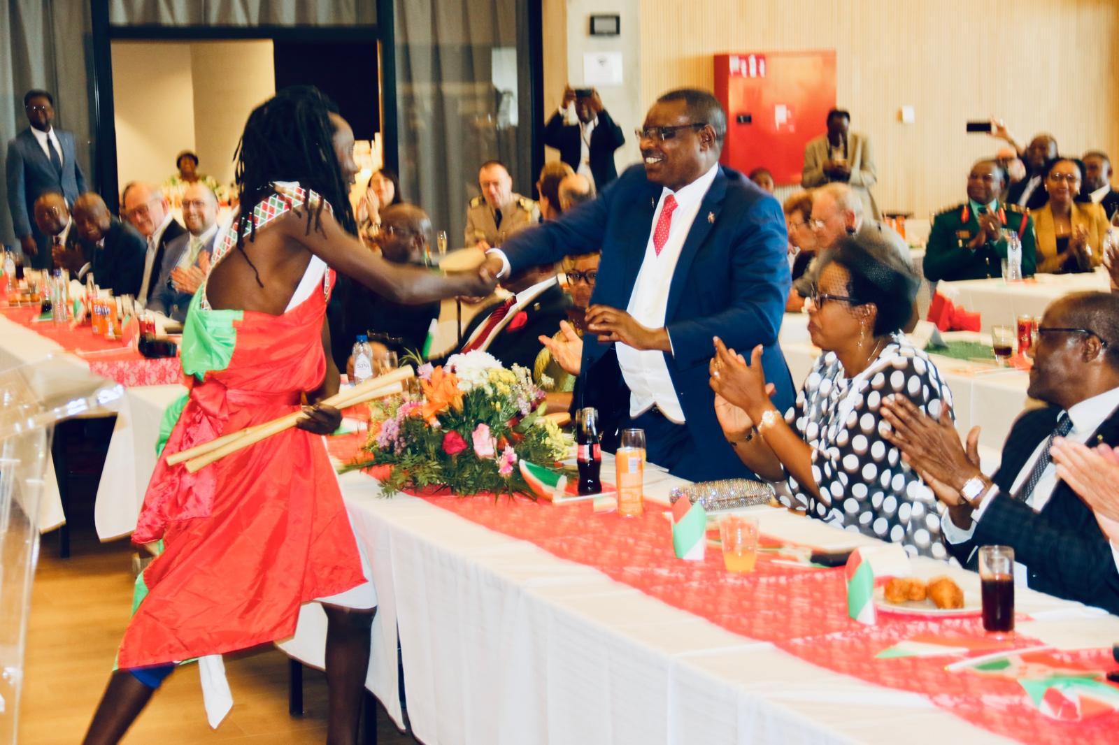 Samedi, en compagnie de son épouse Mme Nitonze Eliane, Amb. Ntahiraja Therence, le très apprécié Ambassadeur Extraordinaire et Plénipotentiaire de la République du Burundi auprès du Royaume de Belgique, du Grand-Duché de Luxembourg et de l’Union Européenne, organisait une grande festivité pour célébrer le 62ème anniversaire de l’indépendance du pays. De nombreuses hautes personnalités diplomatiques étaient présentes et ont pris la parole pour l’occasion. Les tambourinaires et les danses traditionnelles des femmes burundaises étaient à l’honneur, accompagnées par des cornemuses écossaises. Les Barundi et leurs amis ont partagé un verre et dansé jusqu’en fin de journée.