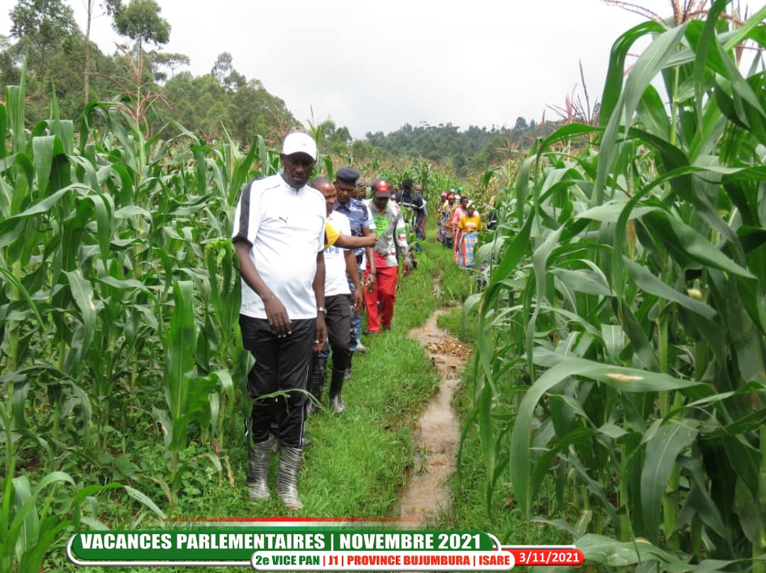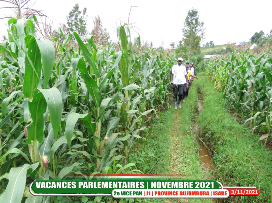 BUJUMBURA ( Commune ISARE ), 5/11/2021 – L’Hon. GASHATSI Abel, Vice Président de l’Assemblée Nationale du BURUNDI, visitait, avec d’autres parlementaires en vacances, un champ de maïs de 5 ha de la coopérative BIBARE. Prouvant la vivacité économique de la localité.