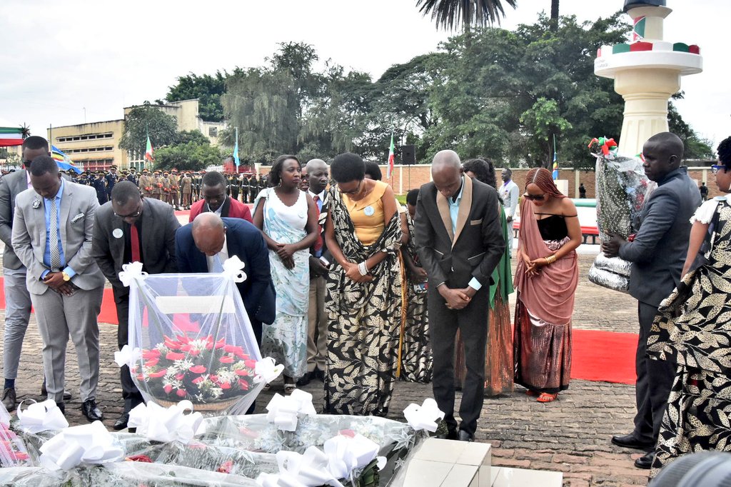 Ce mercredi 6 avril 2022, tout le BuRuNDi commémore la 28ème année depuis cet épisode tragique de l’Histoire du pays pour lequel, jusqu’aujourd’hui, aucun responsable n’a encore été condamné. Fait englué dans l’injustice internationale comme le sont la Colonisation et l’Esclavage, ces fameux autres crimes contre l’humanité. S.E. NDaYiSHiMiYe Evariste ( Général Major ), Président du BuRuNDi, accompagné de S.E. NDaYuBaHa Angéline, Première Dame du BuRuNDi, de toutes les hautes autorités burundaises, et toutes les représentants diplomatiques, ont assisté à une messe en mémoire de Feu NTaRYaMiRa. Par la suite, déposant une gerbe de fleurs à sa tombe sise à la place des Martyrs de la démocratie.