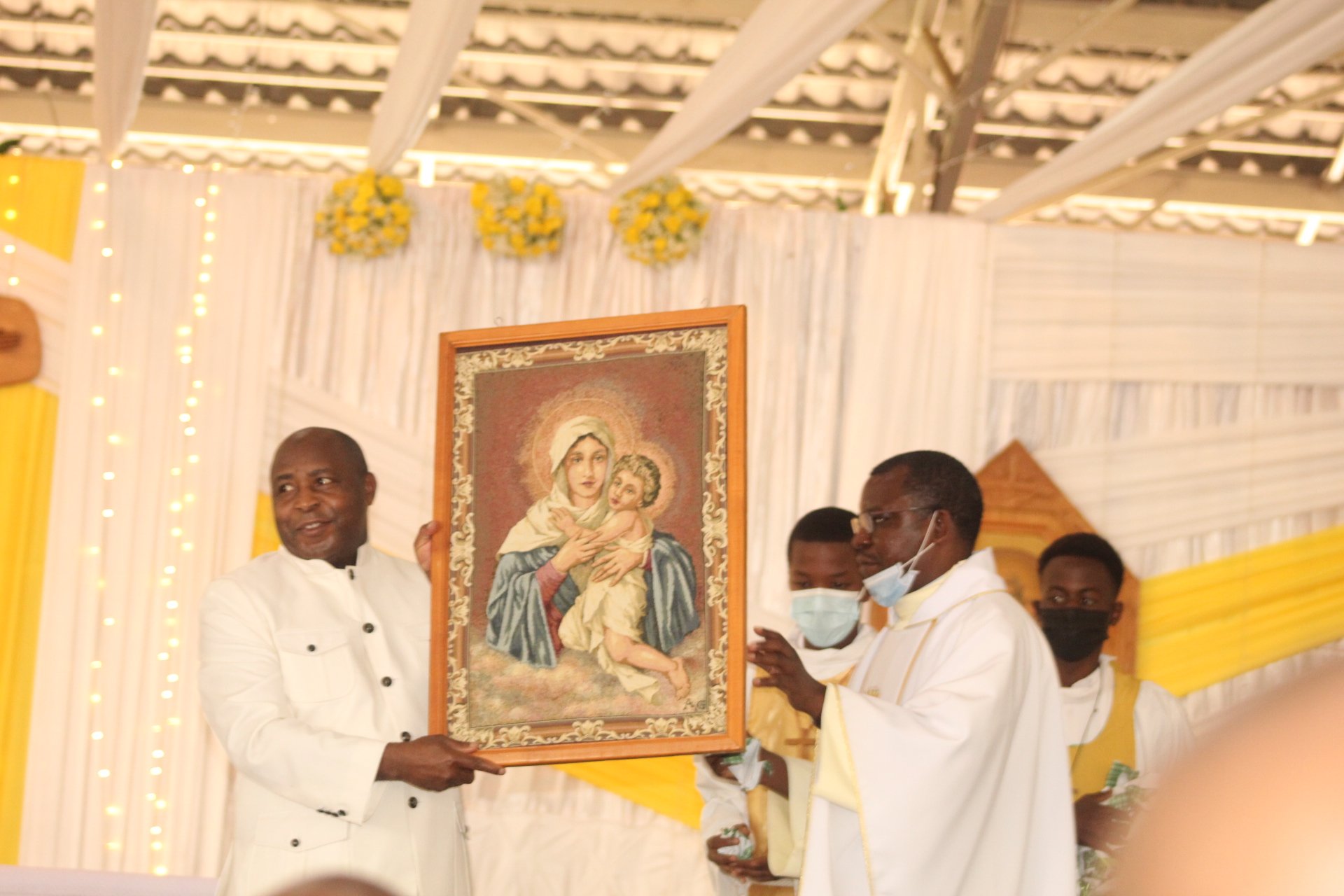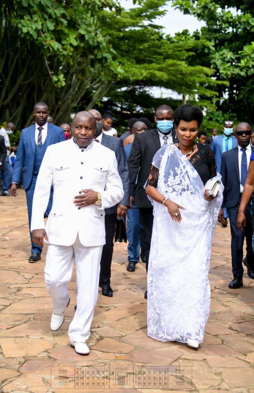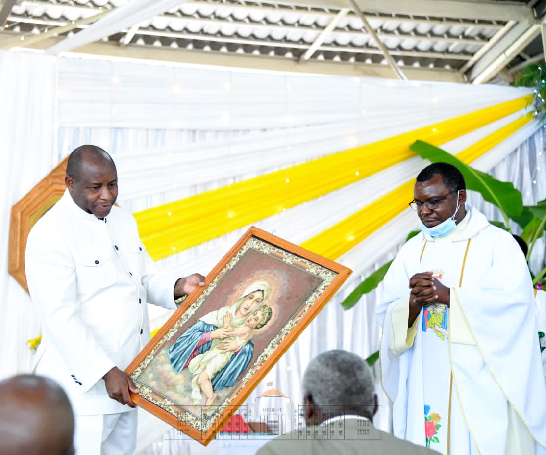BUJUMBURA, 27/12/2021 – La famille de S.E. NDAYISHIMIYE Evariste ( Général Major ), Président du Burundi, était à la messe d’ouverture de la Prière Nationale d’Action de grâce. Célébrée au Mont Sion Gikungu, en présence de tous les Hautes personnalités burundaises. S.E. NDAYISHIMIYE Evariste indiquant que cette prière a été organisée pour rendre grâce à Dieu pour la paix et l’unité du peuple burundais. Donnant en cadeau à l’archevêque de Bujumbura une peinture de la Vierge Marie et de Jésus, geste mettant à mal les décoloniaux Barundi.
