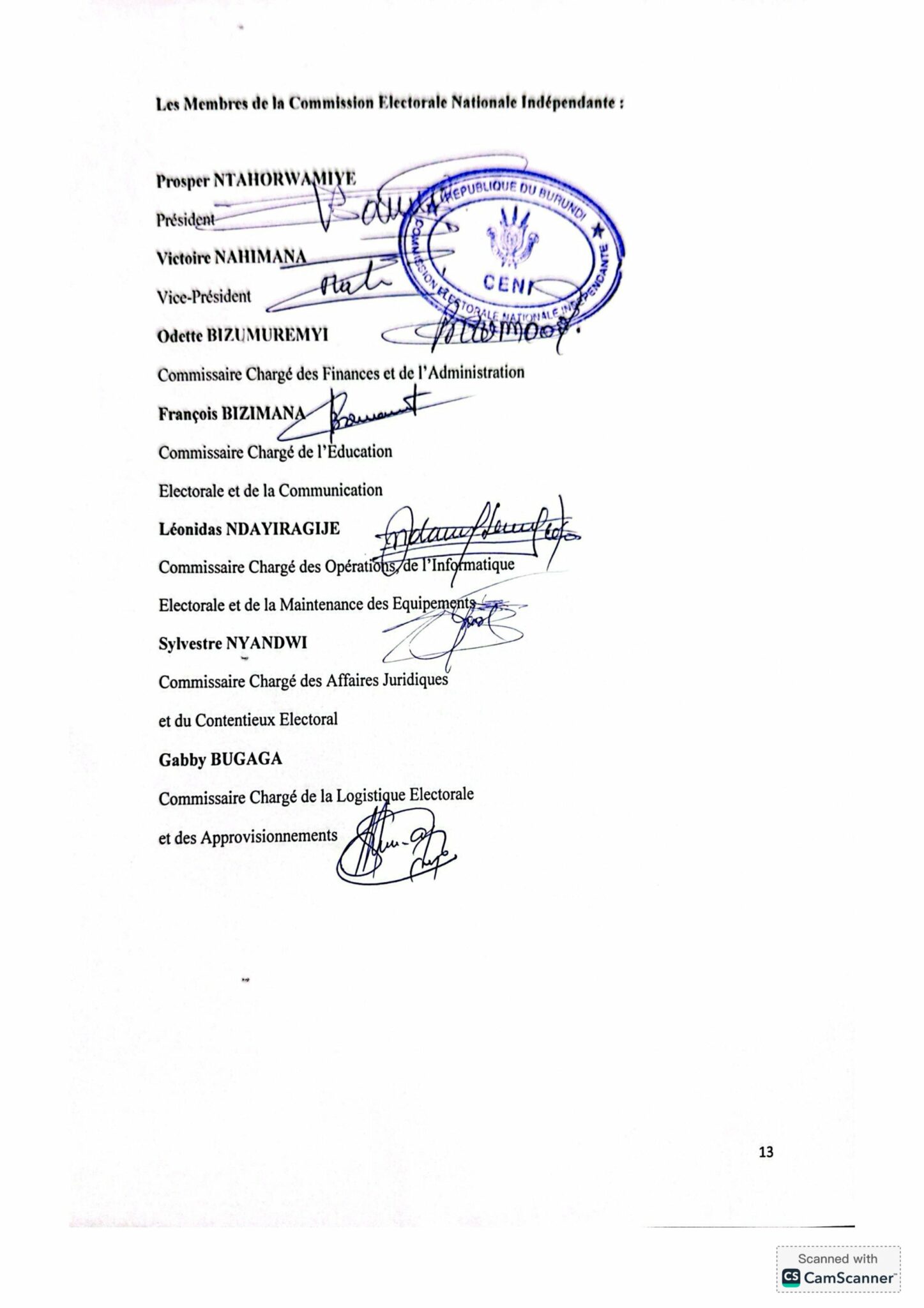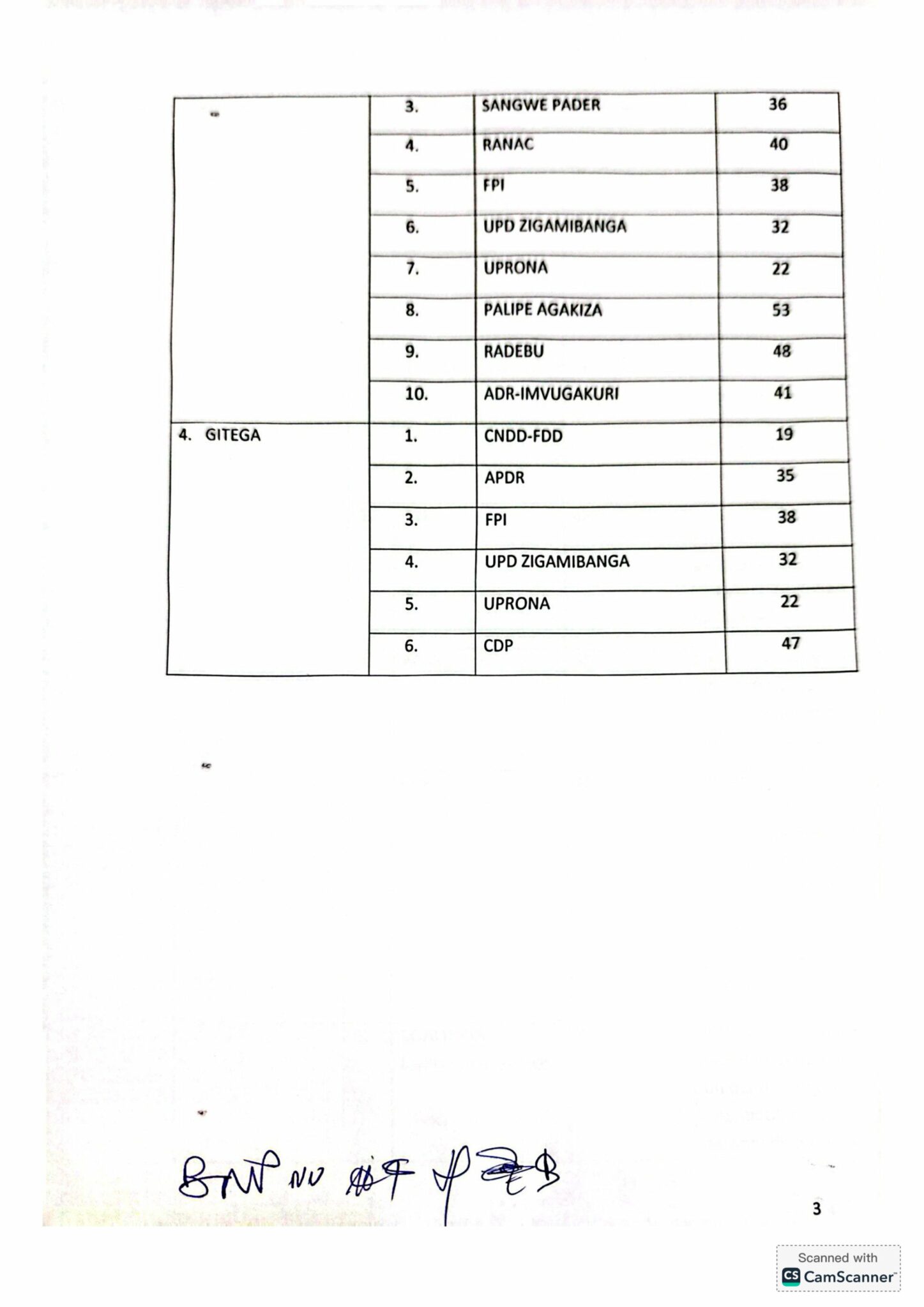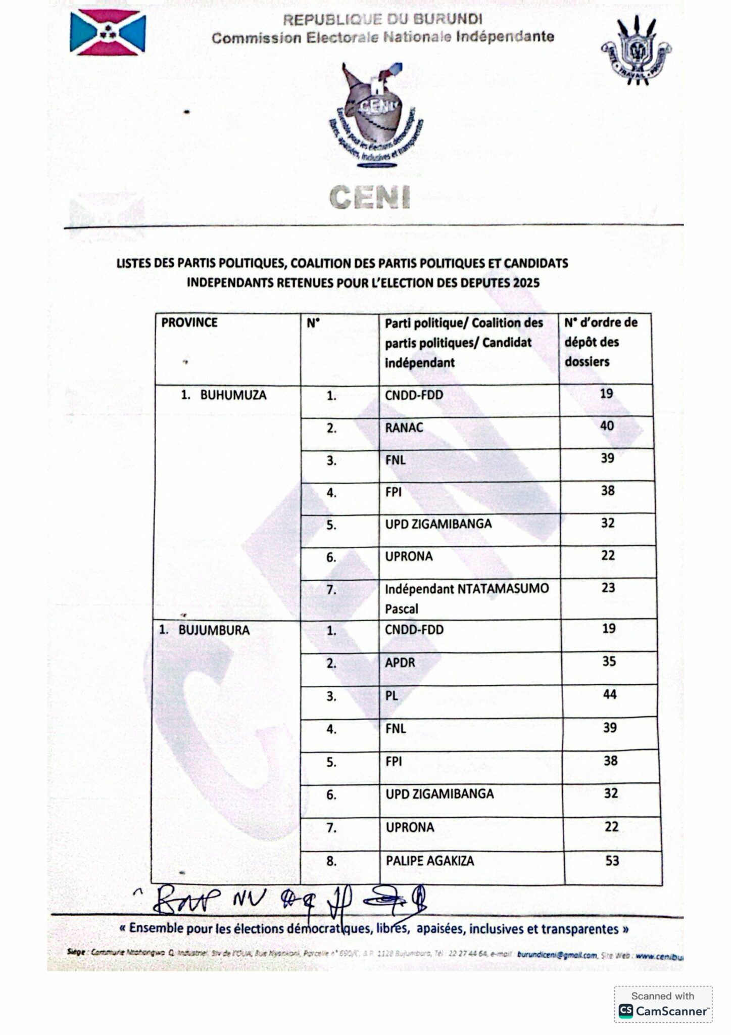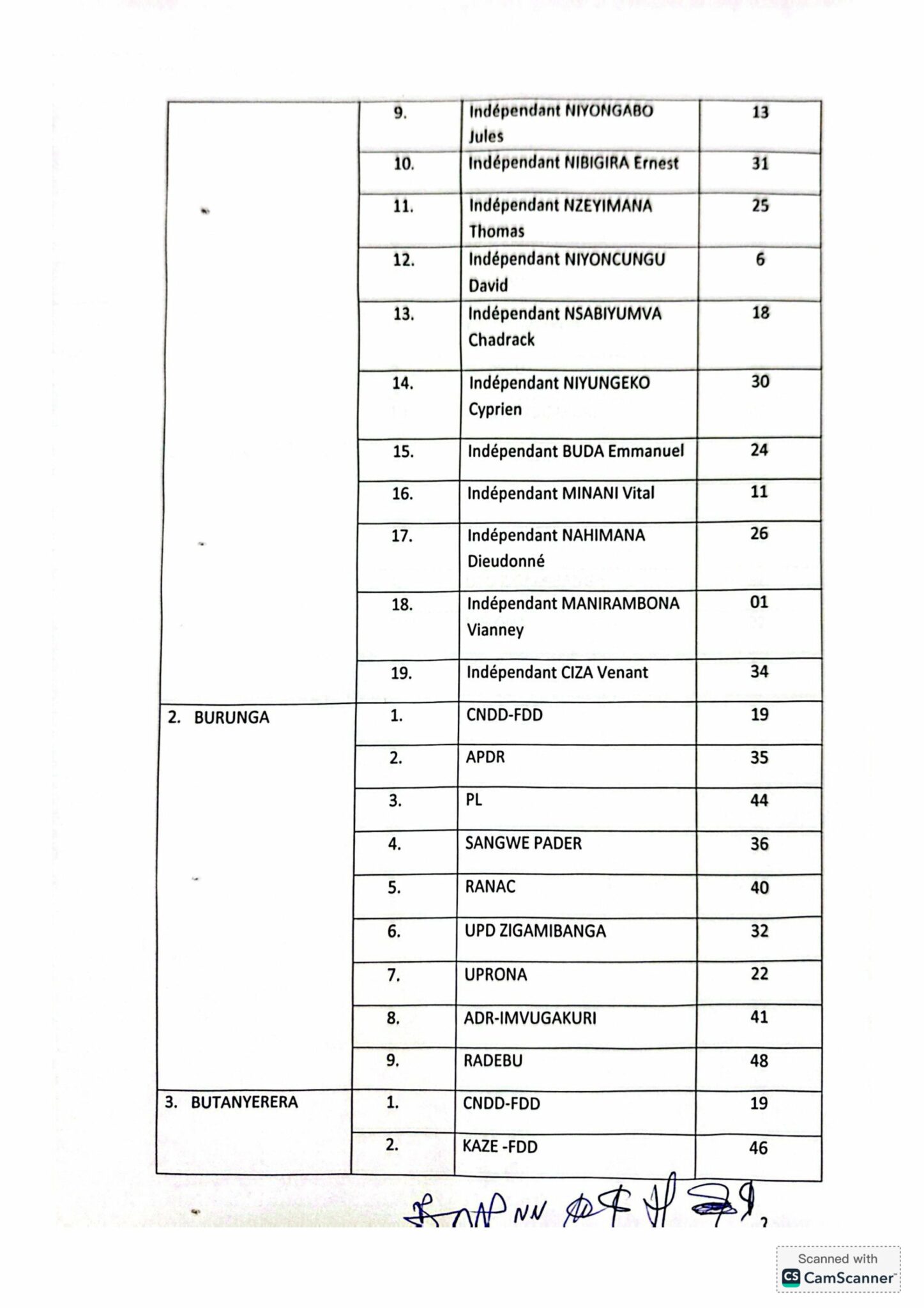 Cependant, la CENI a également rejeté les listes de cette coalition, car elles incluaient des députés déjà affiliés au CNL, en violation des articles 112 du Code électoral et 7 de la loi sur les partis politiques.