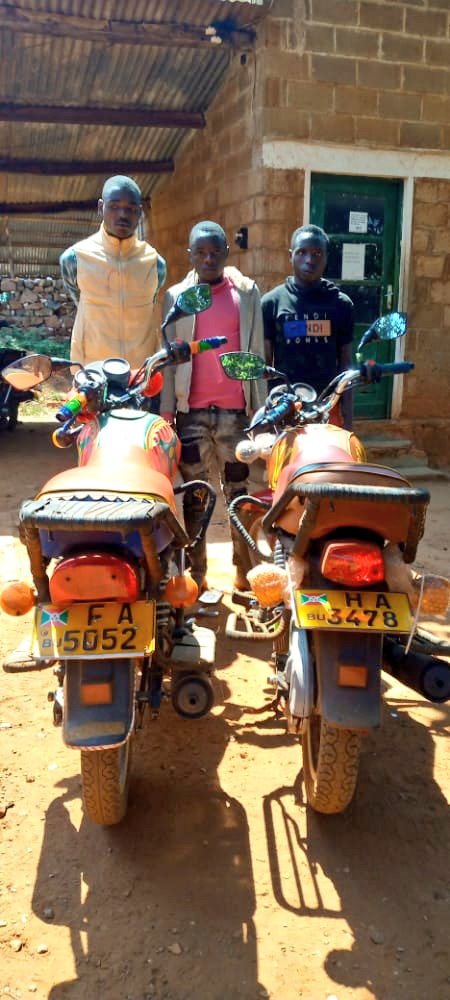 des individus aux arrêts pour tentative de meurtre et de vol de moto à Buhiga, Karusi