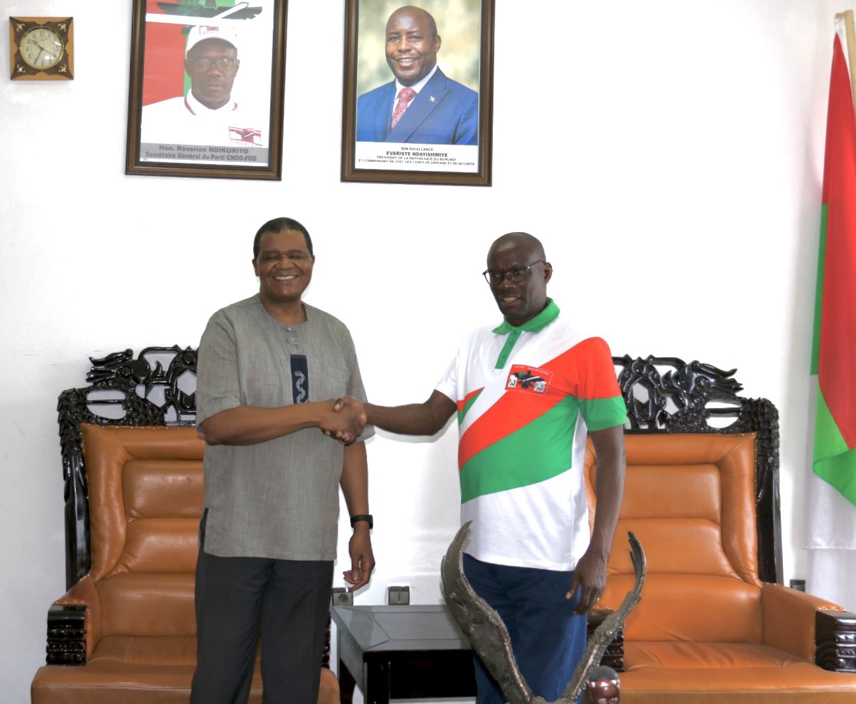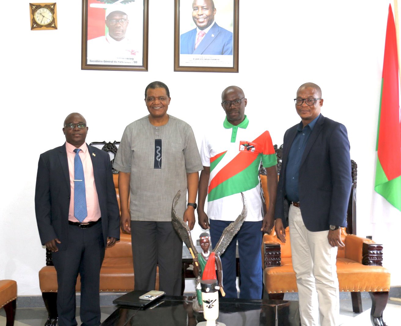 Gitega, 22/10/2024 – Honorable Ndikuriyo Révérien, Secrétaire Général du parti CNDD-FDD, a accueilli M. Mbulelo S. Bungane, Ambassadeur de l’Afrique du Sud au Burundi, et Mme Vu Thanh Huyen, Ambassadeur de la République socialiste du Vietnam.