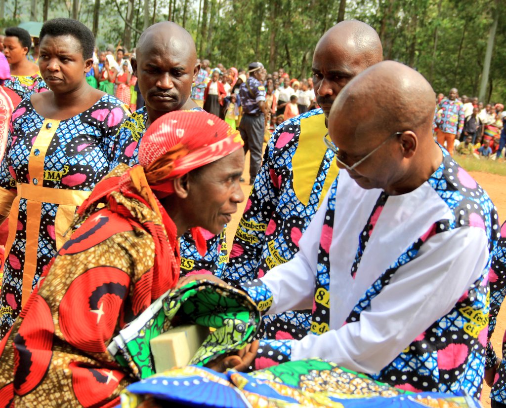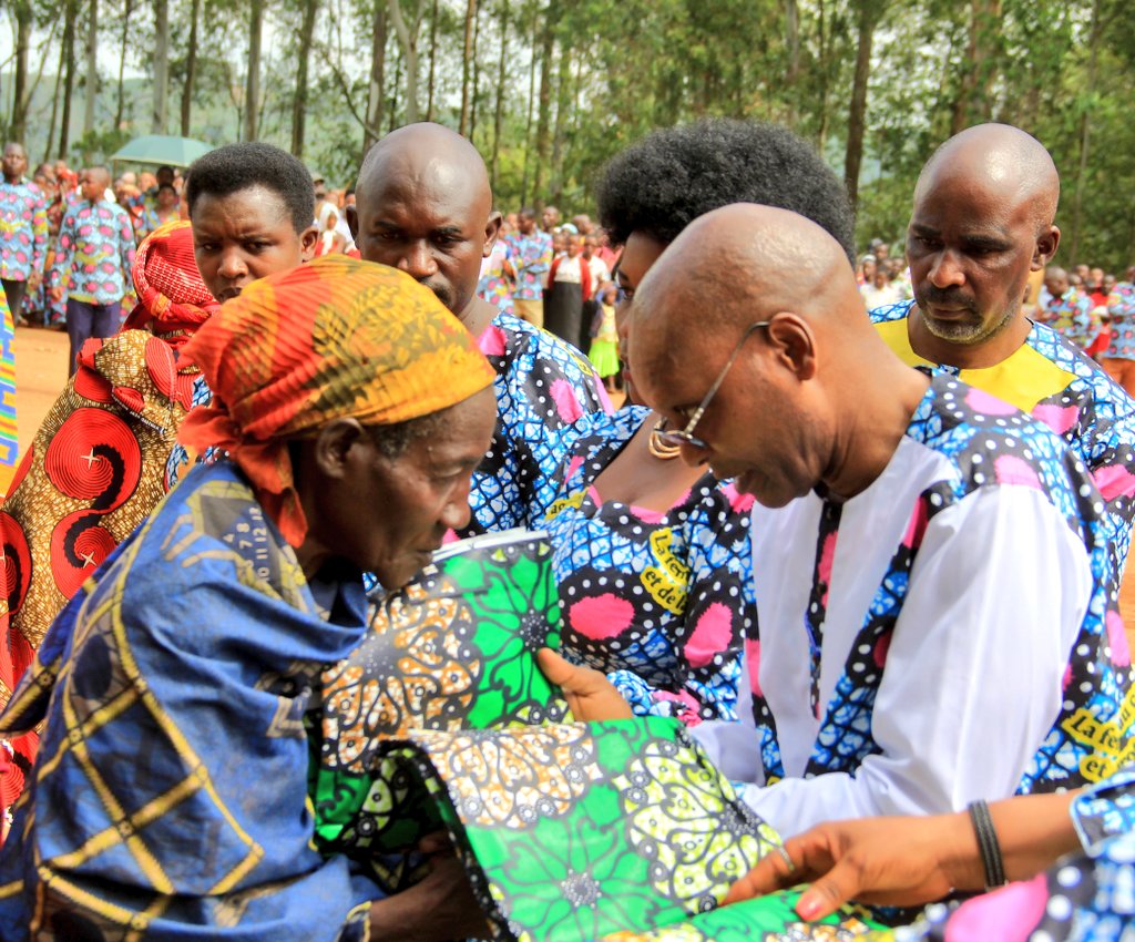 L’Hon. NDaBiRaBe Daniel Gélase en a profité pour octroyer une aide composée de pagnes et de savons à 80 femmes âgées et vulnérables de BuTaGaNZWa.