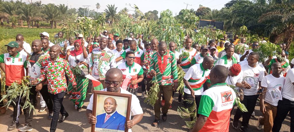 Ce samedi, des Bagumyabanga ( nom des militants du CNDD-FDD, 1ère formation politique du Burundi ) de Rumonge, ont marché avec des membres de la Section Provinciale Rumonge du CNDD-FDD, pour remercier S.E. Ndayishimiye Evariste ( Général Major ), Président du Burundi, pour ses bonnes réalisations depuis 2 ans.