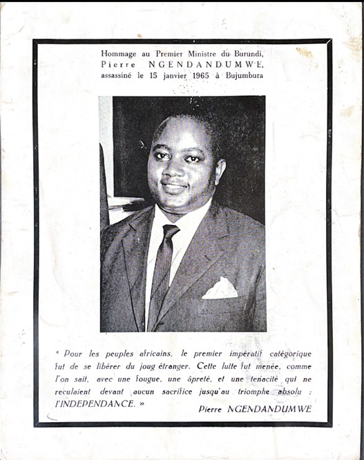 [2] Assassinat du Premier ministre du Burundi, Pierre Ngendandumwe : Cinquante ans après. Par Perpétue Nshimirimana, le 15 janvier 2015. Contribution à la Commission Vérité-Réconciliation et au Mécanisme de Justice Transitionnelle | https://www.arib.info/Perpetue-Nshimirimana-Portrait-de-Pierre-Ngendandumwe-15012015.pdf