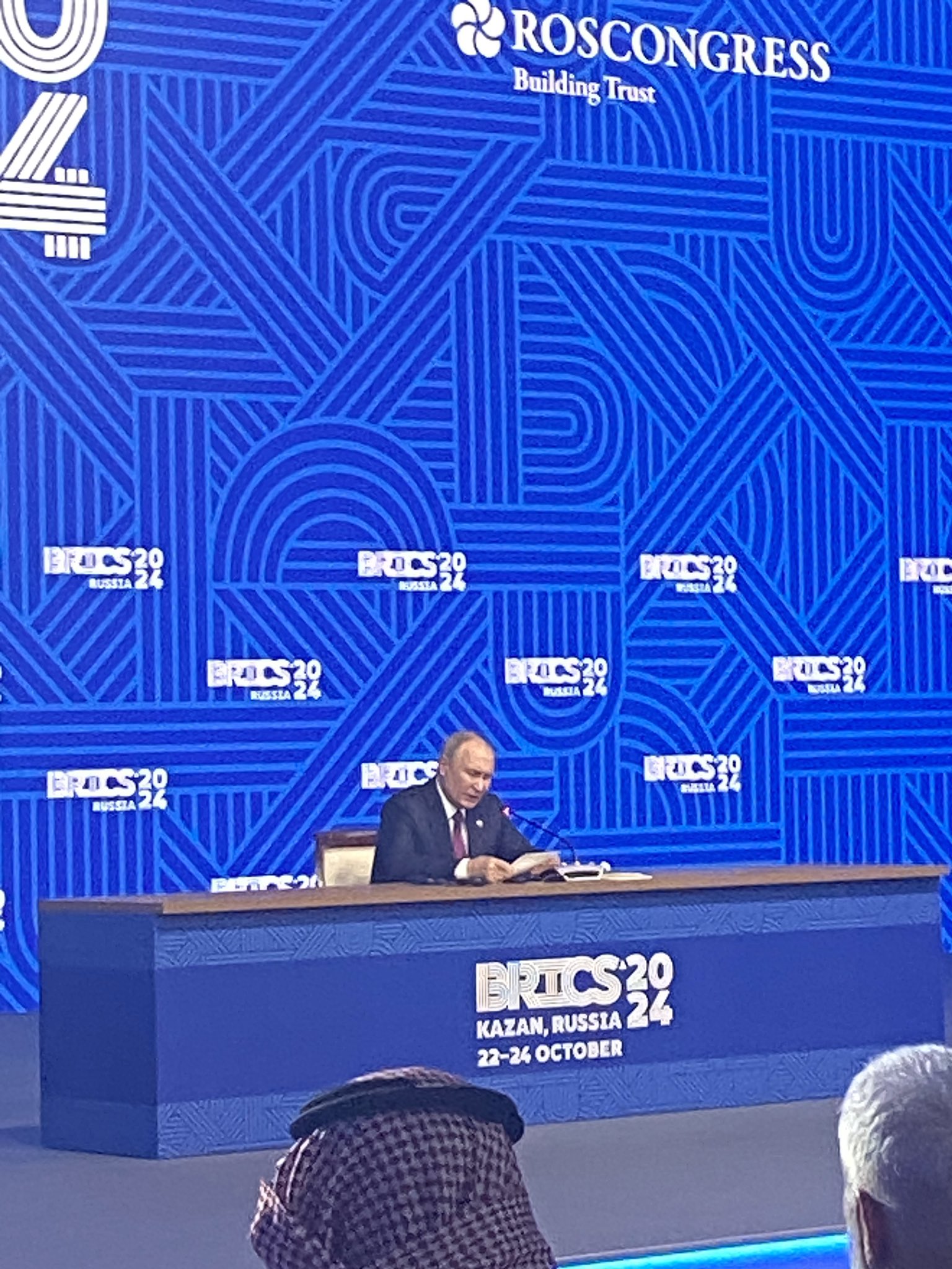 [2] « Les puissances économiques mondiales ont abusé de leur position, et le BRICS est là pour remédier à cette situation. Les nations d’Asie du Sud et d’Afrique se préparent à un développement rapide dans les années à venir, et le BRICS se positionne comme un partenaire prêt à les soutenir. De plus, le BRICS envisage de créer une liste restreinte de nouveaux membres potentiels, basée sur l’intérêt de 30 pays souhaitant rejoindre l’alliance. La Russie n’a jamais rejeté les contacts avec l’Occident et reste ouverte à la restauration des relations. Il n’y a jamais eu de liens entre Donald Trump et moi, mais la Russie accueille ses déclarations pro-paix. Si les États-Unis souhaitent établir de bonnes relations avec la Russie après les élections, nous serons également prêts à répondre favorablement. Enfin, pour réduire le niveau de confrontation au Moyen-Orient, il est essentiel de collaborer avec toutes les parties concernées. » – Vladimir Poutine, Président de la Fédération de Russie.