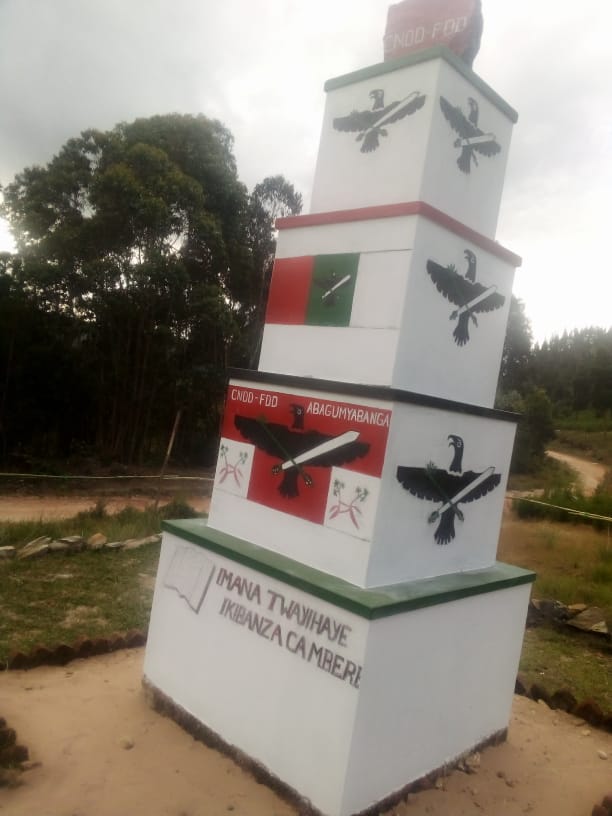 BURURI ( Commune BURURI), 29/05/2021 – En réunion, après un accueil de nouveaux membres, LA SECTION COMMUNALE BURURI inaugurait un monument CNDD-FDD, soit une petite structure artistique à l’effigie du CNDD-FDD, érigé sur la colline BUHINGA.