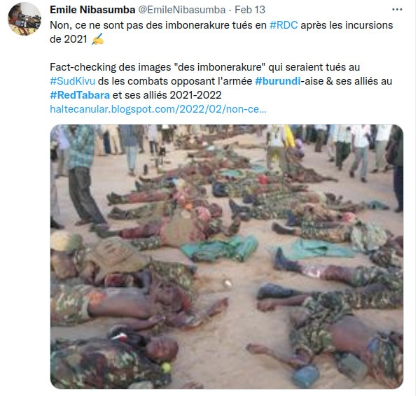 Par exemple, ici, en prenant une photo des soldats burundais et ougandais morts en SoMaLie en 2011, et les faisant passer pour des soldats burundais et des -iMBoNeRaKuRe – tués par REDTABARA et milices FORCES NEGATIVES en RDC CONGO.