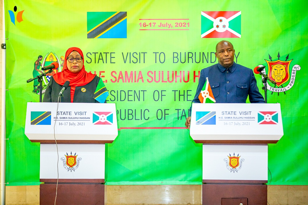 GEOPOLITIQUE DES GRANDS LACS AFRICAINS, DEFENSE, SOCIETE, PRESIDENCE, DIPLOMATIE – BUJUMBURA, Vendredi 16 juillet 2021 – Au Palais NTARE RUSHATSI HOUSE, sous le bonheur ressenti de MUKAKARYENDA [ https://bdiagnews.com/culture/burundi-qui-est-karyendaplus-precisement-mukakaryenda/ ], protégé par IMANA [ https://bdiagnews.com/afrique/burundi-dieu-est-il-imana/ ], avec la joie de MUKAKIRANGA ( MUKARYANGOMBE ). Reçue par S.E. NDAYISHIMIYE Evariste ( Général Major ), Président du BURUNDI, avec tous les Honneurs militaires possibles dont 21 coups de canon tirés. S.E. SULUHU Samia Hassan, Présidente de LA TANZANIE, était accueillie, comme un parent rentrant à la maison, par des BARUNDI heureux de sa visite. Symboliquement pour marquer ce temps,les deux chefs d’état ont planté un arbre dans le jardin du palais.