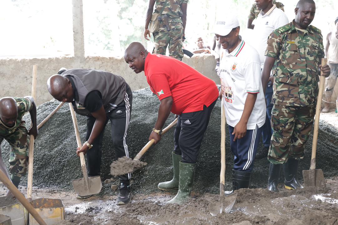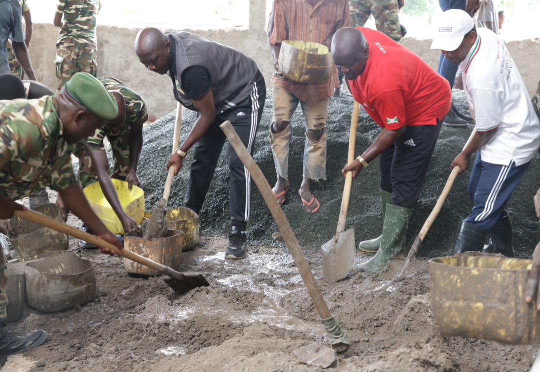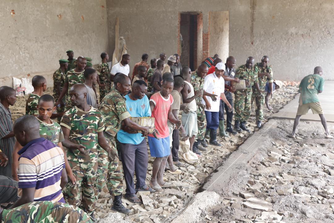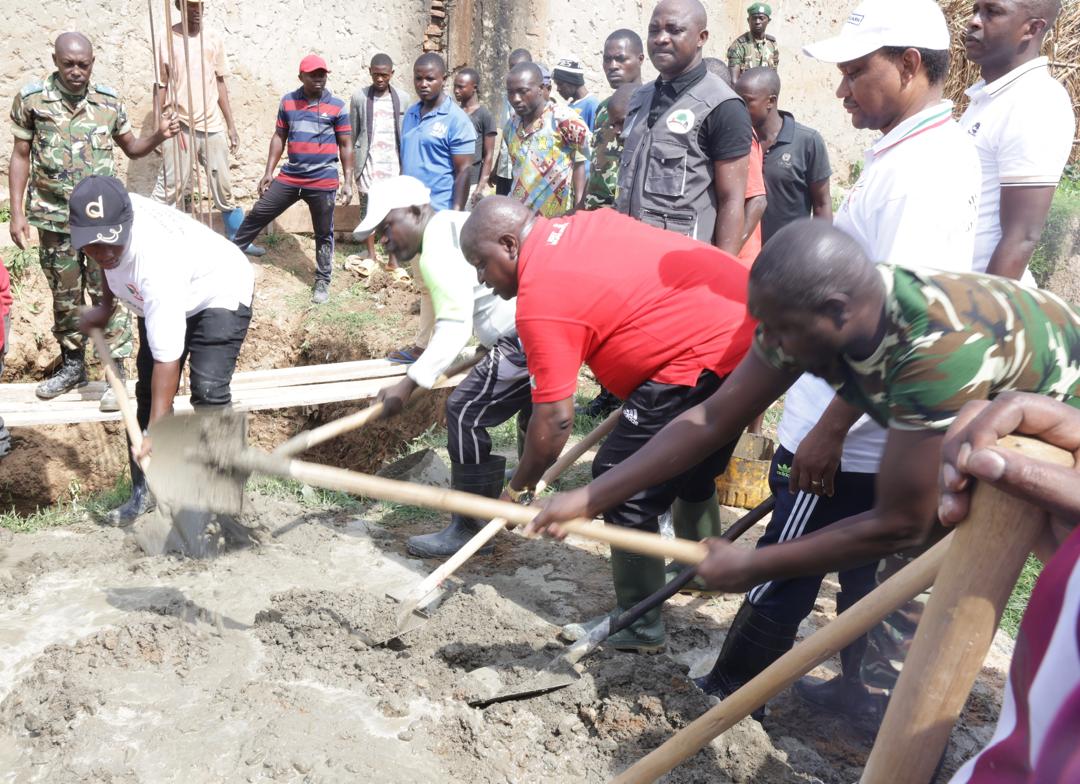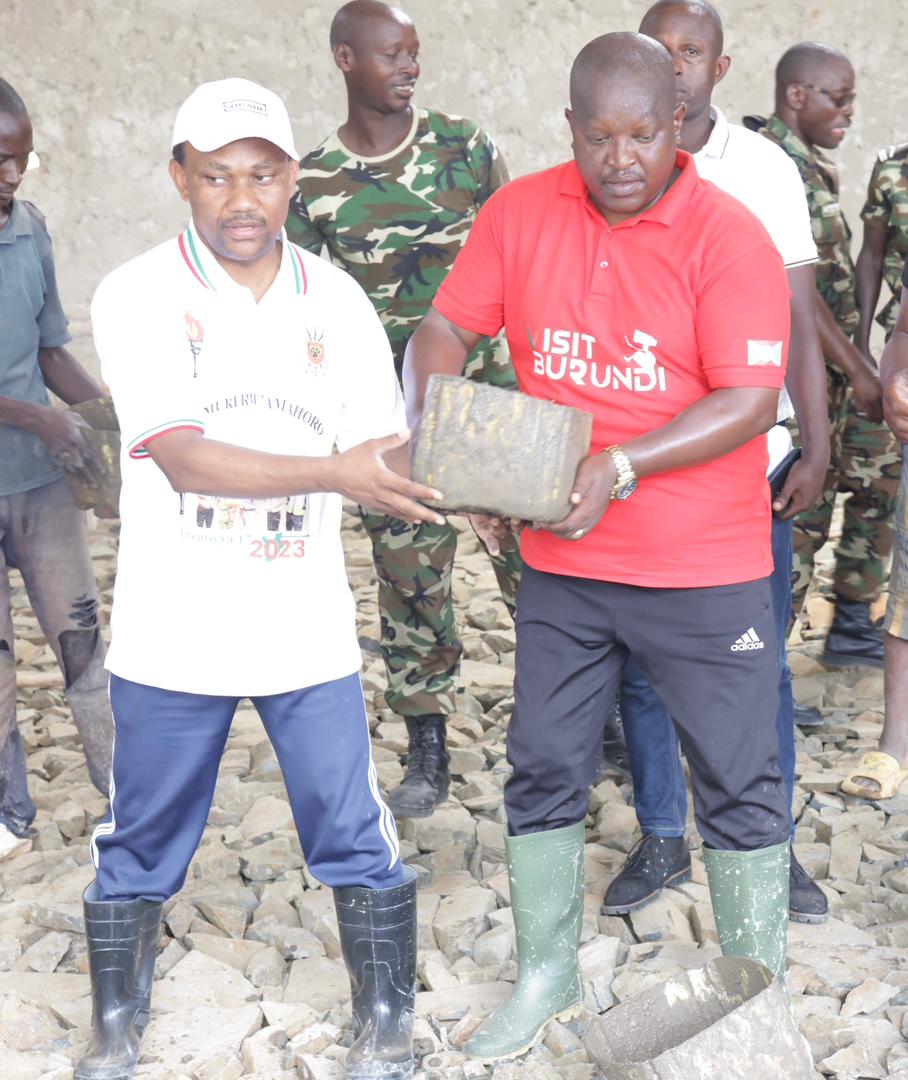 Burunga (Rumonge), 4/01/2025 – Dans le cadre de la politique socio-économique du Burundi, M. Mutabazi Alain Tribert, ministre burundais de la Défense nationale et des anciens combattants, a participé aux travaux de développement communautaire ( TDC, https://bdiagnews.com/TDC ) aux côtés de la population locale, y compris les militaires des camps environnants. Ces travaux, en présence de M. Niyonsaba Léonard, gouverneur de Rumonge, consistaient à bétonner les semelles pour la construction d’un bâtiment scolaire de 8 classes à étages à l’école fondamentale ECOFO de Mugweji.