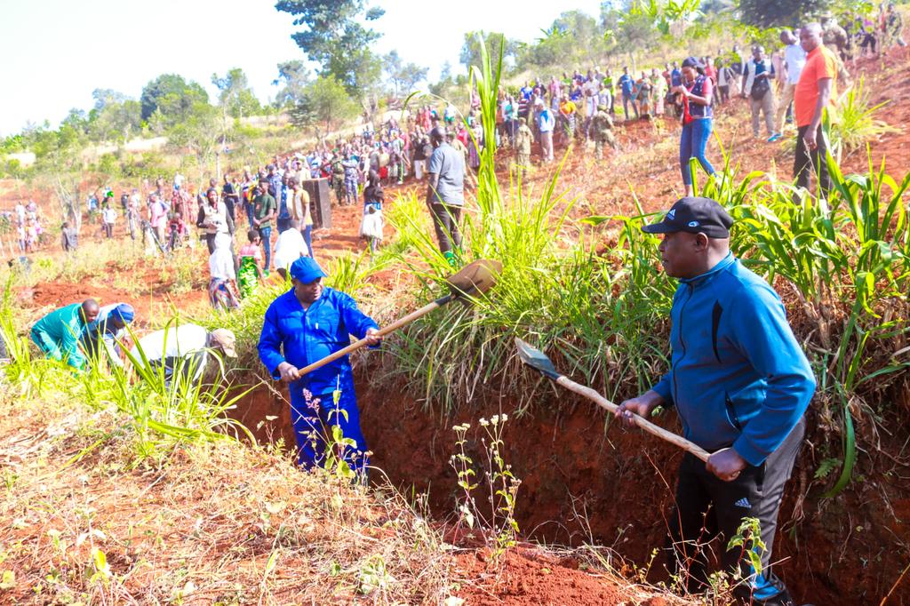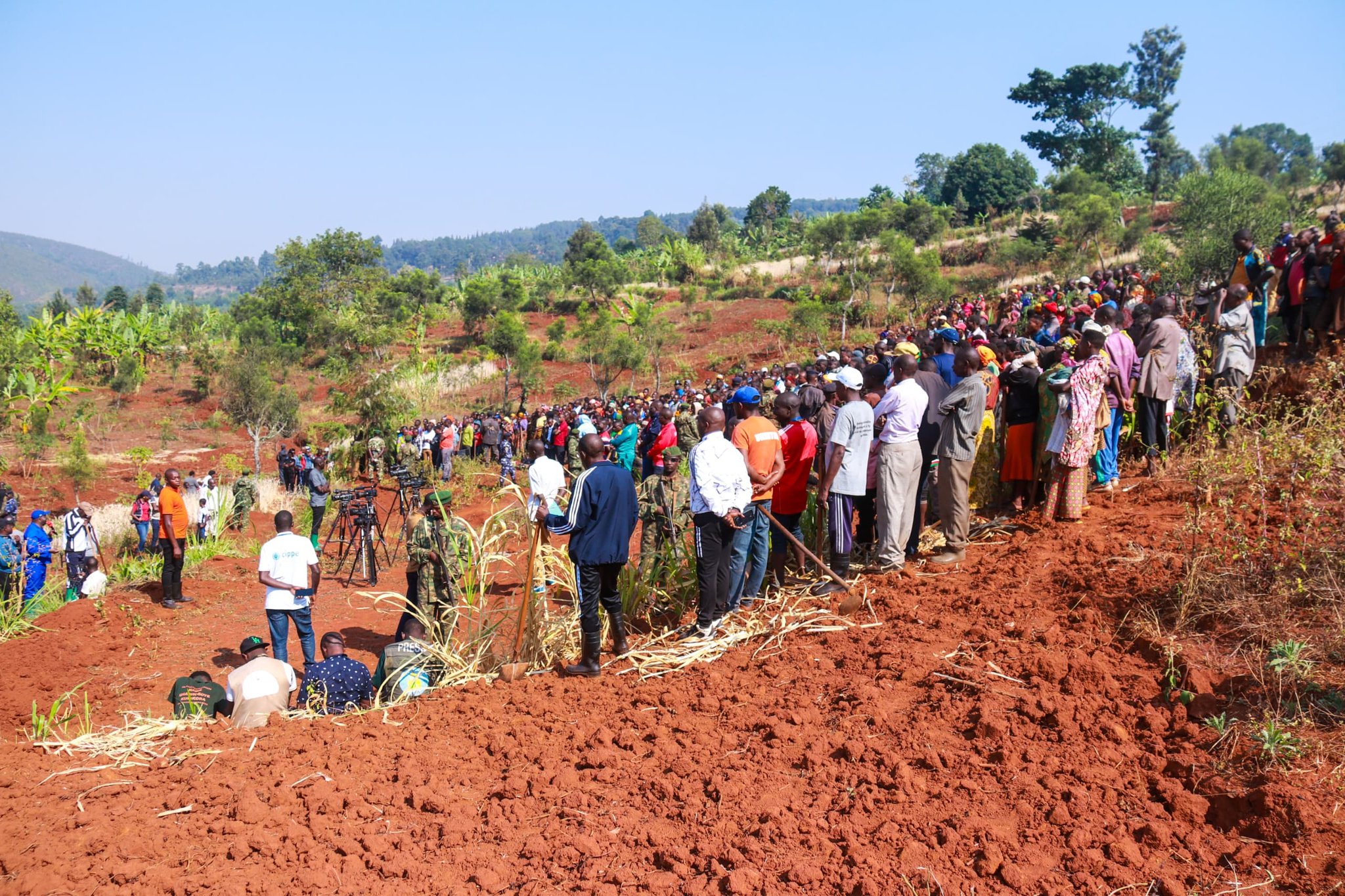 Gitega (Mwaro), 25/07/2024 – En symbiose avec la politique socio-économique des Barundi, notamment environnementale, la Caravane Inkebuzo poursuit son parcours. En compagnie de Mme. Sabushimike Imelde, Ministre de la Solidarité Nationale, S.E. Ndayishimiye Evariste, Général Major et Président du Burundi, a rejoint la population, en particulier les élèves en vacances de la commune Kayokwe, sur la colline Kibogoye. Ensemble, ils ont réalisé des Travaux de Développement Communautaire (TDC : https://bdiagnews.com/TDC), consistant à tracer des courbes de niveau. Les TDC sont un pilier de la politique socio-économique des Barundi.