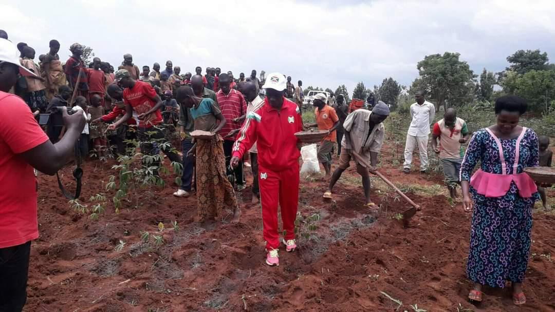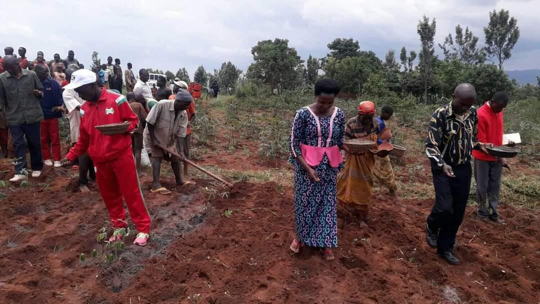 SOCIO-ECONOMIQUE – NGOZI ( Commune NYAMURENZA ), Mardi 23 mars 2021 – Mme NIZIGIYIMANA Césalie, Administrateure communale de NYAMURENZA, organisait, avec une trentaine de membres BARUNDI de la communauté revendiquée BATWA [ https://burundi-agnews.org/TWA ] en colline SHOZA, des TRAVAUX DE DEVELOPPEMENT COMMUNAUTAIRE [ TDC – https://burundi-agnews.org/TDC ]. Consistant à des travaux champêtres. Procédant à la mise en terre de 200 kg de semis de haricot comptant pour la saison culturale B. Octroyés par M. NDAYISHIMIYE Bosco de l’Agence Nationale de Promotion et de Régulation des sociétés coopératives (ANACOOP) au BURUNDI.