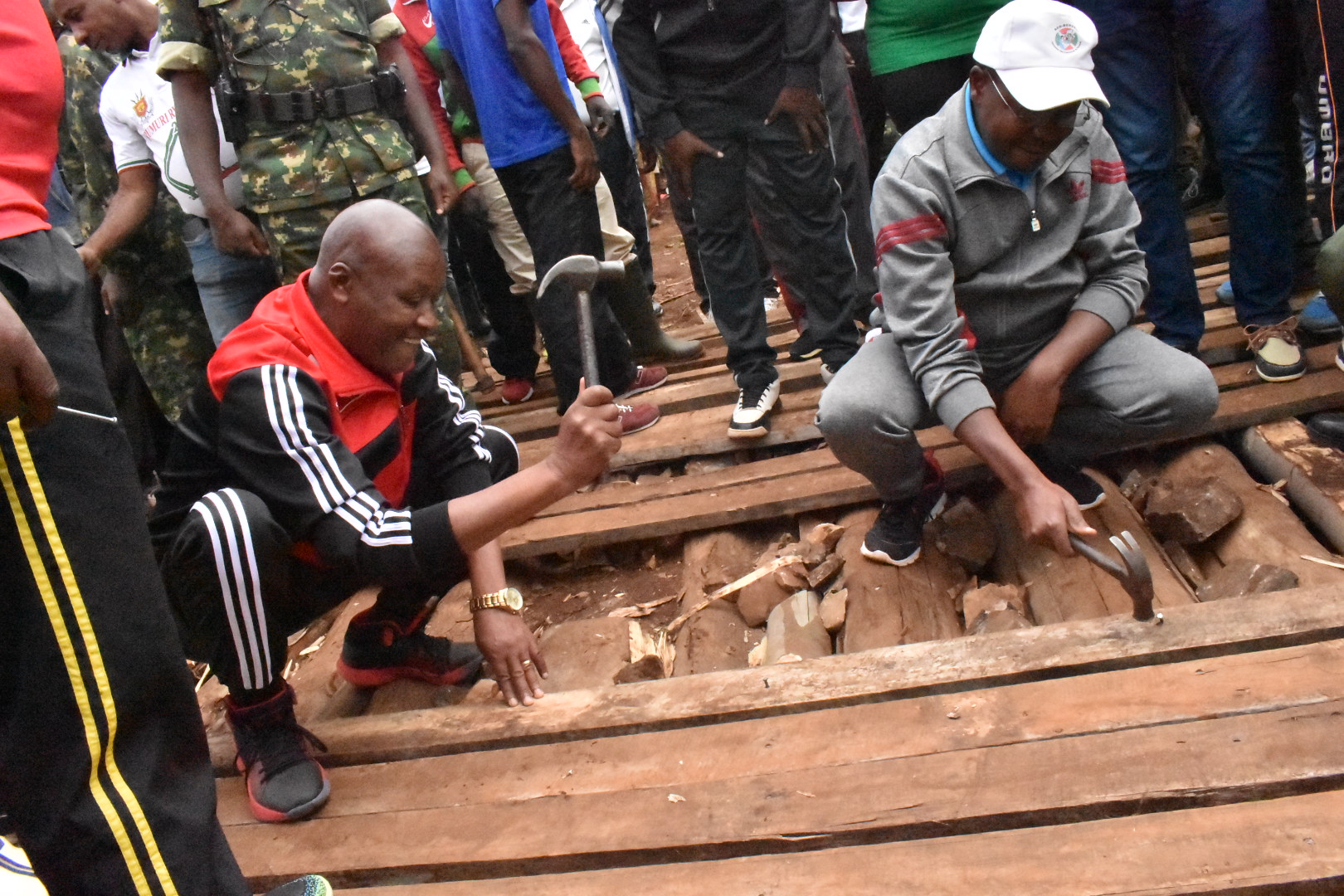 MWARO, 21/08/2021 – Aidés par des jeunes étudiants en vacances. S.E. BAZOMBANZA Prosper, Vice Président du BURUNDI, participait avec les citoyens de cette localité aux TRAVAUX DE DEVELOPPEMENT COMMUNAUTAIRE [ TDC – http://bdiagnews.com/TDC ]. Réhabilitant un pont détruit sur la rivière KAYOKWE. Reliant la colline KIZI de la commune RUSAKA à la colline BUBURU de la commune GISOZI. Offrant, en fin de TDC, 80 madriers, 10 kg de clous et le salaire de 3 ouvriers locaux.