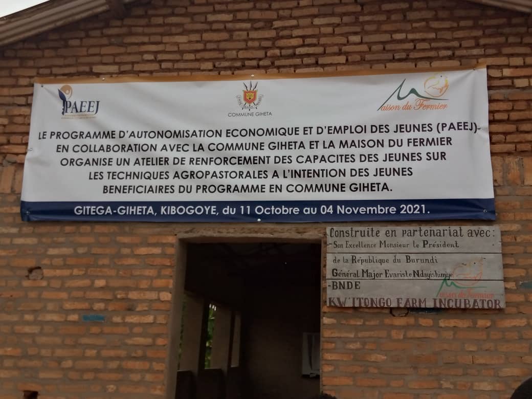 GITEGA ( Commune GIHETA ), 12/10/2021 – Le Programme d’Autonomisation Economique et de l’Emploi des Jeunes ( PAEEJ ) organisait un atelier sur la colline KIBOGOYE. Rassemblant 124 jeunes des 31 coopératives de toutes les collines de la commune. Renforçant les capacités des jeunes sur les techniques agropastorales. Collaborant avec l’Administration de Mme NINAHAZA Micheline, Adminitrateure communale de GIHETA, et la Maison du Fermier.
