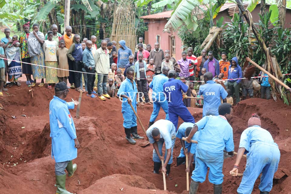 JUSTICE, HISTOIRE, GÉNOCIDE, PANAFRICANISME – KIRUNDO ( Commune VUMBI ), Mardi 11 mai 2021 – La Commission Vérité Réconciliation du BURUNDI (CVR.BI) a recensé et exhumé, en colline et quartier GASURA zone VUMBI, des corps de victimes du GENOCIDE CONTRE LES HUTU DU BURUNDI DE 1972 [ https://burundi-agnews.org/genocide-contre-les-hutu-du-burundi-en-1972/ ] dans 9 fosses communes. Plusieurs crânes étaient éparpillés dans des bananeraies de GASURA.